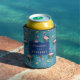 Flamingo Birds 20s Deco Ferns Pattern Blue Custom Can Cooler