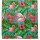 Flamingo bird, flamingo flower, monstera leaves and hibiscus were painted with watercolors on paper, then scanned and the seamless pattern was made in Photoshop.
