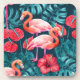 Flamingo birds and tropical garden watercolor coaster