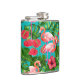 Flamingo bird, flamingo flower, monstera leaves and hibiscus were painted with watercolors on paper, then scanned and the seamless pattern was made in Photoshop.