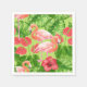 Pattern made of painted with watercolor monstera leaves, hibiscus flowers,flamingo flowers and birds