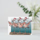 Flamingo chorus line wearing Santa hats Holiday Postcard