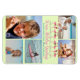 Magnetic flamingos photo template greeting with place for 5 pictures. Tropical chartreuse green with pink and blue text.