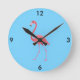 This round shape wall clock is shown with a cute pink flamingo art print.