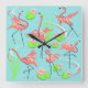 Lively pink flamingos flap their wings and ruffle their feathers against a blue watery background with reeds and water lilies. A stylish design with a retro touch which can be personalised with your own text, images and ideas. An original digital art image created by QuirkyChic.