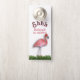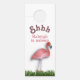 A flamingo alerts people that your baby is asleep. The reverse has the same image but with a palm tree instead.