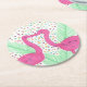 Flamingo Fun Tropical Pattern Round Paper Coaster