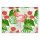 Watercolor pattern design with flamingo flowers and birds, monstera and palm leaves.