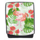 Watercolor pattern design with flamingo flowers and birds, monstera and palm leaves.