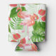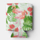 Watercolor pattern design with flamingo flowers and birds, monstera and palm leaves.