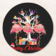 Flamingo Lights Santa Hat Sweater Tree Christmas Round Paper Coaster