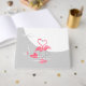 A pair of pink flamingos with necks curved to form a heart shape stand in the sea on a moonlit beach. A stylish, romantic design with a retro touch created in a pink, grey and white colour scheme with a colour-change background. A customizable design for you to personalise with your own text, images and ideas. An original digital art image.