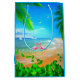 Flamingo Love is my romantic dream beach art with all my favourite elements, Palm trees, dolphins, seagulls, sailboat, starfish, and of course two flamingos facing each other to form their famous pink heart shape.