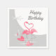 A pair of pink flamingos with necks curved to form a heart shape stand in the sea on a moonlit beach. A mid-century inspired romantic design with a retro touch created in a pink, grey and white colour scheme with a colour-change background. A customizable design for you to personalise with your own text, images and ideas. An original digital art image.