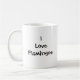 Original close up photo of a pink flaming nestling it's beak under his feathers. The photo is on one side of the mug with the words "I love Flamingos" on the other. Text is customizable and can be changed or removed to suit your needs.