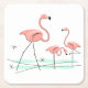 Mid-century inspired design with a retro touch featuring a group of pink flamingos standing in aqua water against a white background. A customizable design for you to personalise with your own text, images and ideas. An original digital art image created by Jess Perry at QuirkyChic Retro.