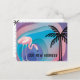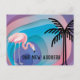 Pink, purple, and aqua gradient shapes create an artistic background reminiscent of Miami South Beach colours. A pink flamingo and line art palm tree confirm that this change of address card is announcing your move to Florida. All text on front and back of the new address postcard can be easily revised by selecting "Personalize this template."