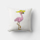 Flamingo on Beach with Hat Throw Pillow