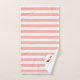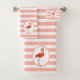 Fashion towel set with beautiful flamingo with coral and white stripes on the background. Image is monocycle.