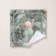 This towel set features a gorgeous pattern of flamingos surrounded by abundant tropical foliage and orchids in soft blush pink and sage green. Striped borders are optional and can be moved or deleted to make room for text if preferred. Search ID868 to see other products with this cheerful, summery pattern.