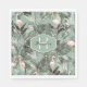 This paper napkin features a gorgeous pattern of flamingos surrounded by abundant tropical foliage and orchids in sage green and blush pink. A label has been provided to hold your name and monogram or other text. Search ID868 to see other products with this cool, tropical pattern.