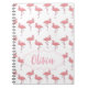 Pink flamingos pattern custom name spiral bound notebooks perfect for school or office use. Flamingo lovers of all ages will adore this classic tropical birds pattern notebook for back to school, as a birthday gift, or just to express how much they love flamingos!
