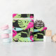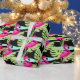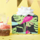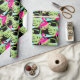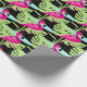 Flamingo pink bird graphic patterned wrapping paper. Cute whimsical pink flamingo in a pool of water with tropical palm leaves tissue paper on a black background that can be changed to your own colour choice if required. Original graphic art and design by Sarah Trett www.sarahtrett.com for www.mylittleeden.com on zazzle.