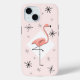 Mid-century inspired design with a retro touch featuring a pink flamingo against a white diamond shape and surrounded by stars on a pale pink background. A customizable design for you to personalise with your own text, images and ideas. An original digital art image created by Jess Perry at QuirkyChic Retro