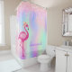 A trendy holographic coloured background with unicorn and rainbow pastel colours in pink, purple, rose gold, mint green. Decorated with faux glitter drips in rose gold, pink and purple and a cute pink flamingo wearing a sun hat. Personalize and add a name, written with a girly modern hand lettered style script. Purple coloured letters.