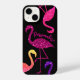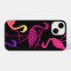 Flamingo pink glitter sparkles Personalize black iPhone Case