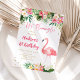 This elegant design features bright, colourful tropical watercolor flowers with faux gold foil accents and a flamingo.