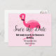 Fun save the date with the unique and stunning flamingo taking centre stage