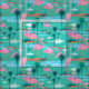 This fresh print has a retro 80's Miami Vice-Camp Beverly Hills vibe. The turquoise background colour makes those pink flamingos pop! Great summer/patio projects fabric print.