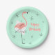 Flamingo Retro Green Happy Birthday paper plate