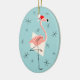 A lively, quirky Christmas design with retro touch featuring a pink flamingo wearing a Santa hat, cream geometric shapes, and stars on a blue (colour change) background. A customizable design for you to personalise with your own text, images and ideas. An original digital art image created by QuirkyChic.
