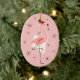 Flamingo Santa Pink Text ornament oval