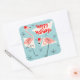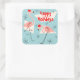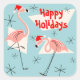 Flamingo Santas Blue Happy Holidays sticker square