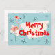 Flamingo Santas Blue Merry Christmas postcard
