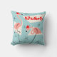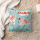 A lively, quirky Christmas design with retro touch featuring pink flamingos wearing Santa hats, cream geometric shapes, and stars on a blue (colour change) background. A customizable design for you to personalise with your own text, images and ideas. An original digital art image created by QuirkyChic.
