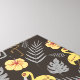 Do you love flamingo birds? Do you enjoy wildlife in rainforests? This tropical flamingo seamless pattern will add some fun to your summer holidays. It fits you when sitting on the beach. Floral patterns always give the impression of joy and happiness. You can present it as a gift to your friends who love flamingo birds. Flamingo surface pattern with flowers and leaves in yellow colour and dark background