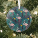 Flamingo, toucan: tropical leaf pattern glass ornament