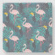 Flamingo, toucan: tropical leaf pattern stone coaster