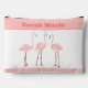 Stand out with this charming accessory bag featuring three hand-drawn flamingos, each with its unique flair. Perfect for storing your essentials, this large fabric bag adds a touch of tropical fun to your daily routine. It can be customized with your name or any personal text to make it uniquely yours.