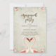 A beautiful flamingo tropical floral design engagement party invitation with a trustic distressed gray background, and co-ordinating navy reverse side. Easy to edit or delete the available text fields to personalize the information with your own details for a custom and professional looking invitation. Lots of matching items in this quirky/boho collection. Please visit my shop to see the full range and to create a suite of items using this lovely design.