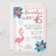 This fully customizable Sweet 16th invitation features a beautiful pink flamingo with a gold crown and a flower necklace.