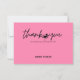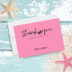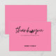 Let your guests know you appreciate them celebrating your birthday party with you by sending them these thank you cards featuring "thank you" typography in modern handwriting script with a silhouette of a flamingo holding a cocktail on a pretty pink background. Art by KL Stock.