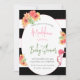 Flamingo Tropical Floral pink and black Stripe Baby Shower. This Beautiful Flamingo and Floral design is a fun design to invite your friends to celebrate a baby shower.