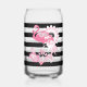 Flamingo Vibes Only Black & White Stripe Flamingo Can Glass