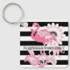 Flamingo Vibes Only Black & White Stripes Flamingo Keychain