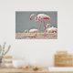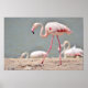 Closeup flamingo (Phoenicopterus - Bird) walking on ground viewed of profile